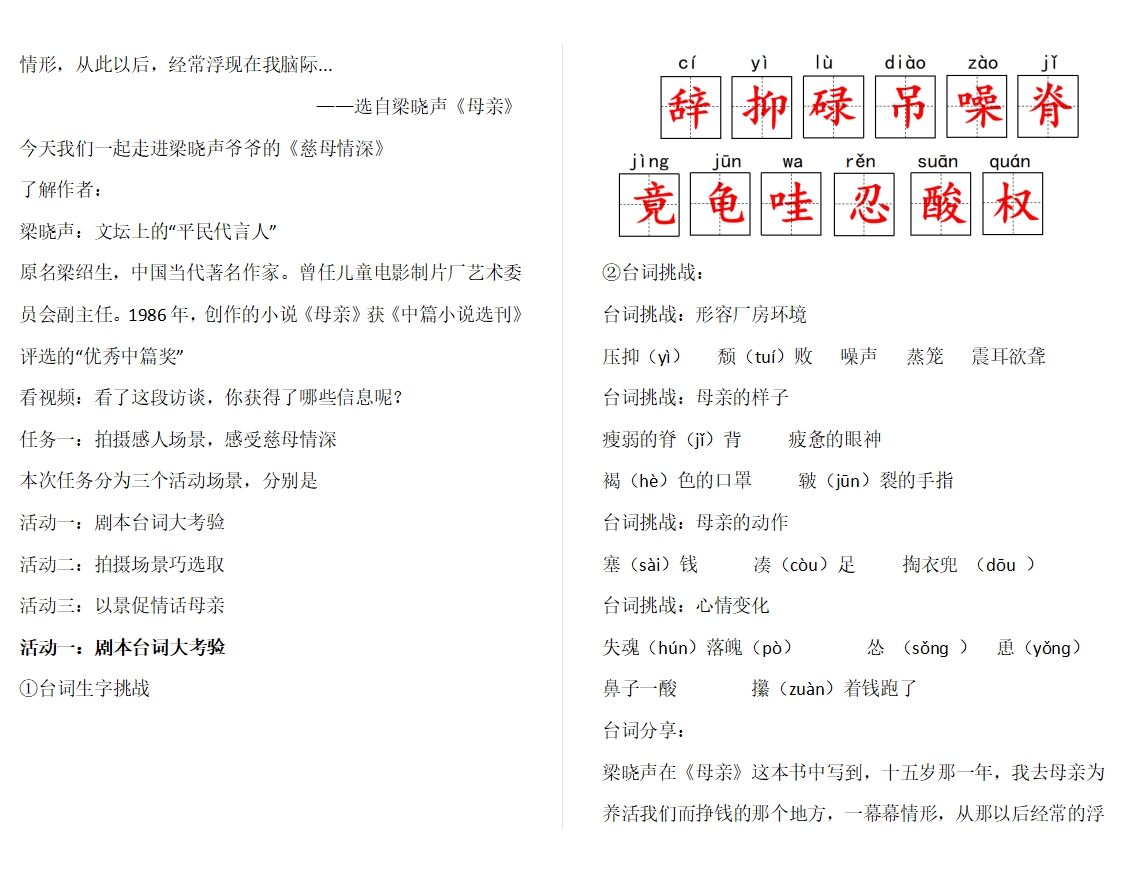Ai赋能五上第六单元18《慈母情深》