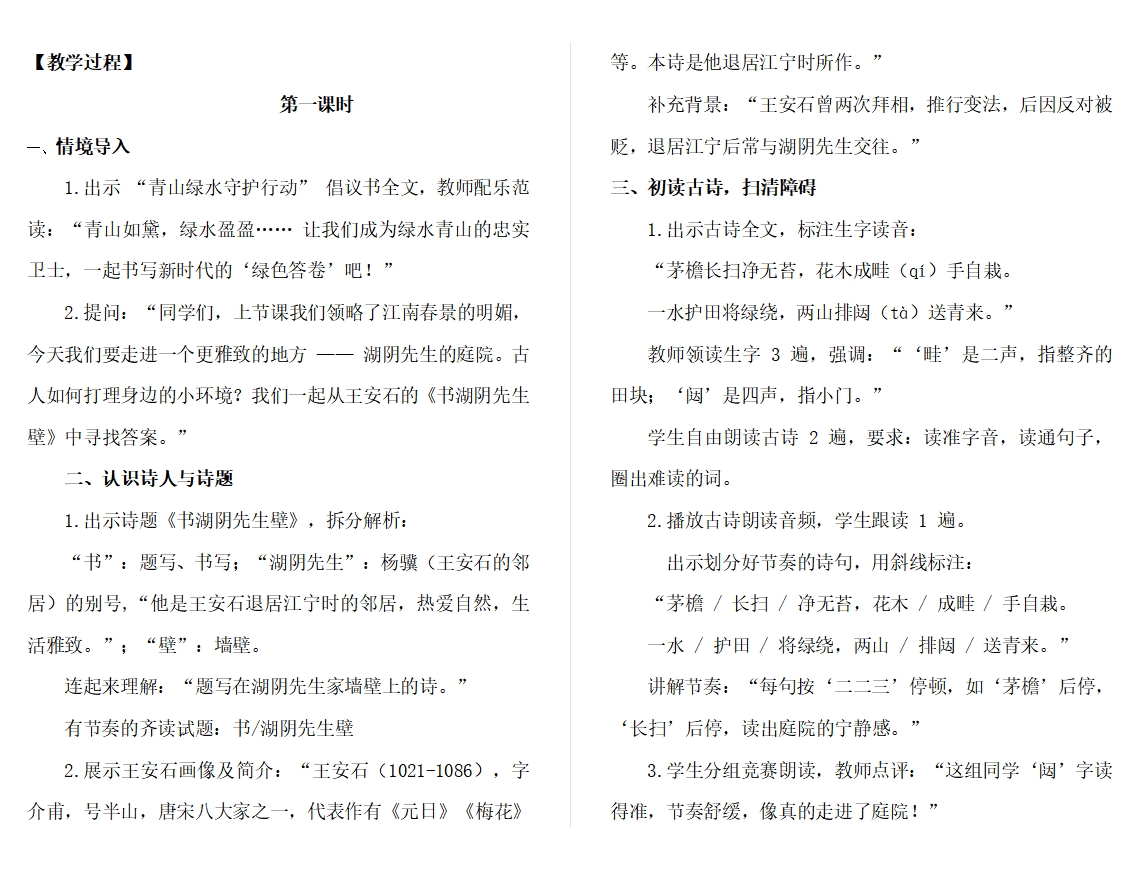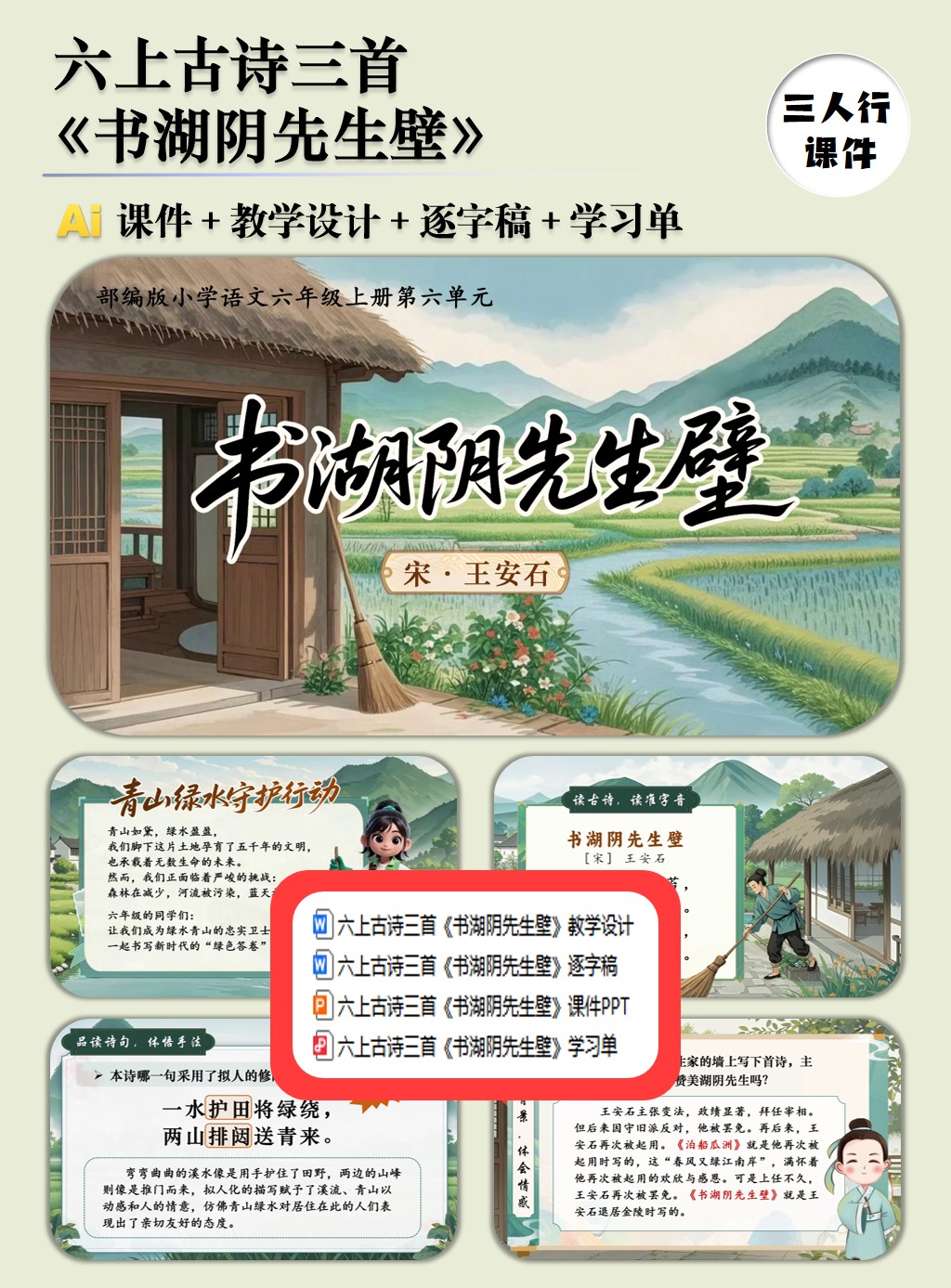 Ai六上第六单元18古诗三首《书湖阴先生壁》