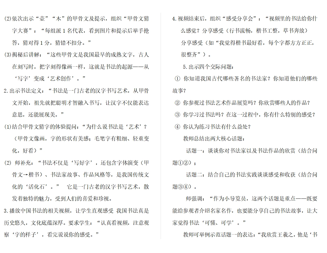 六上第七单元口语交际《聊聊书法》