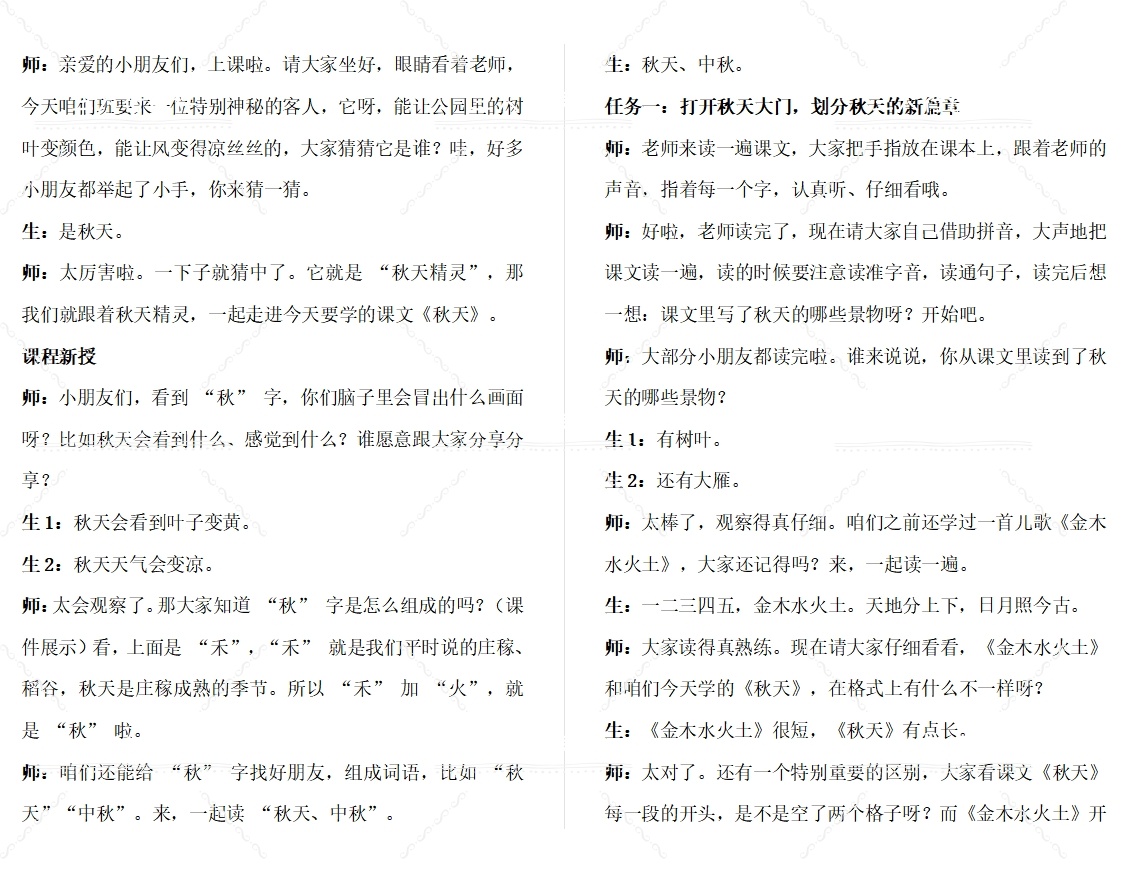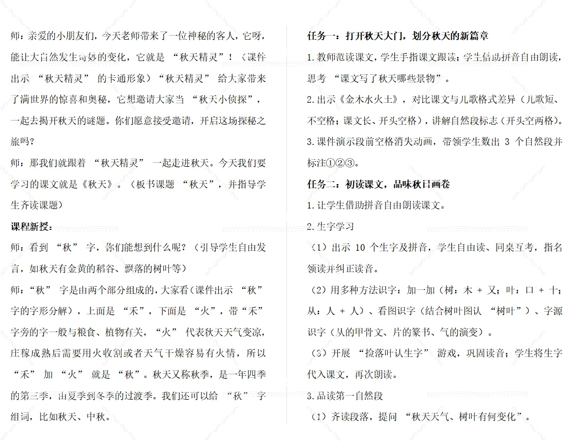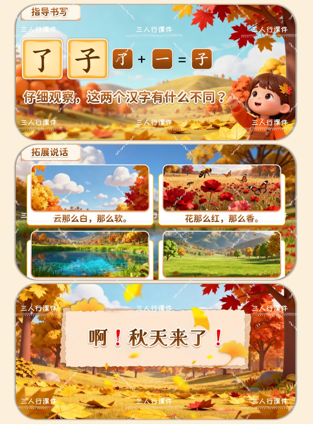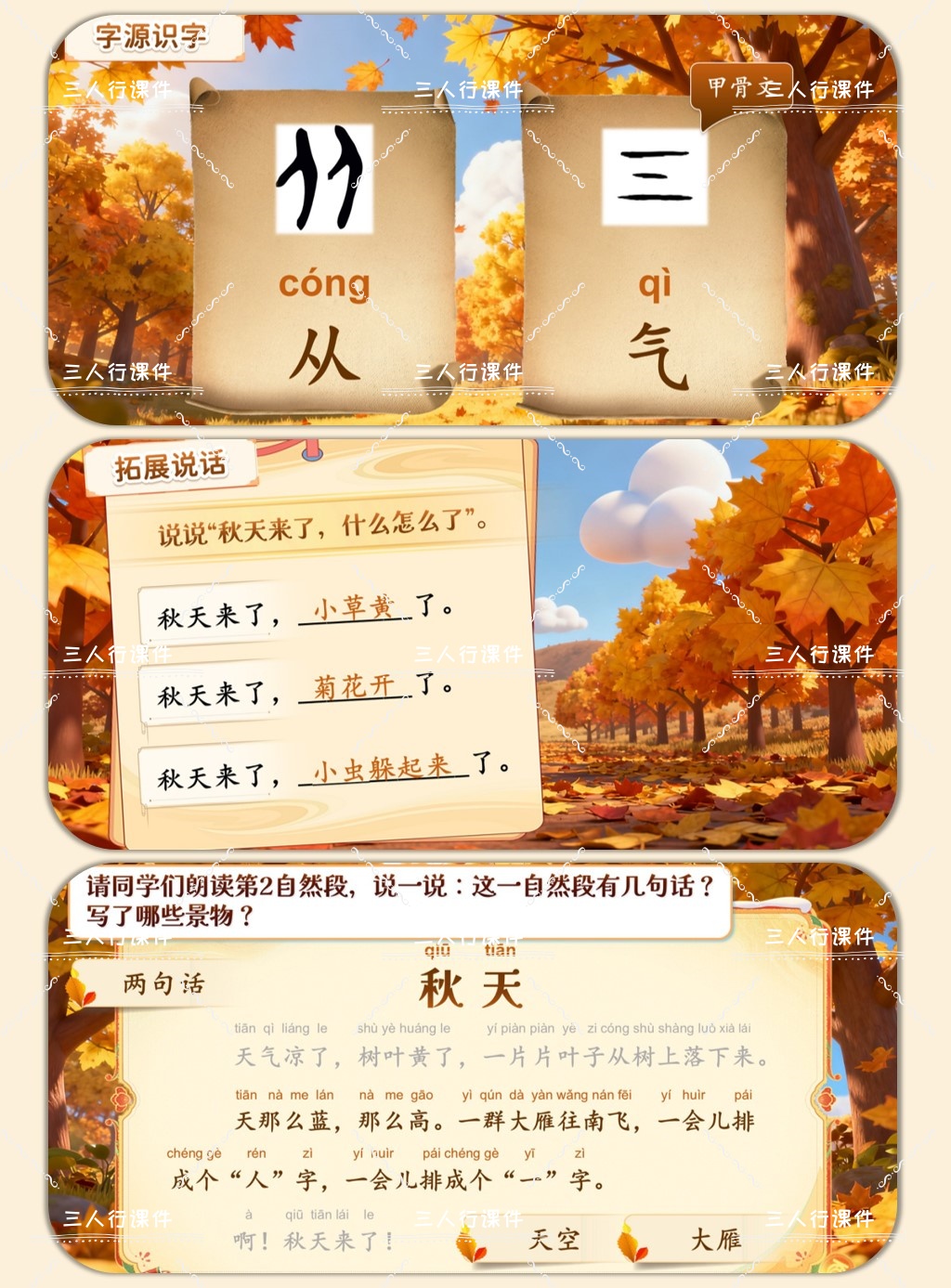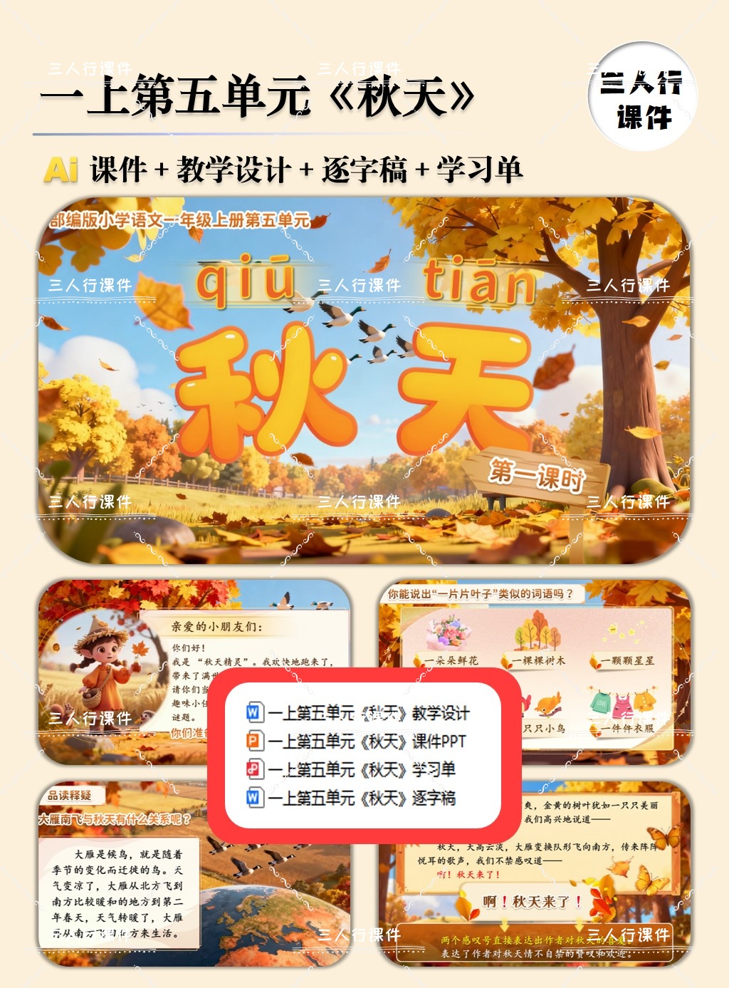 一年级语文上册第五单元Ai赋能一上第五单元阅读1《秋天》